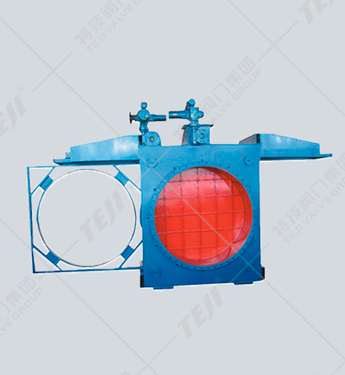 本閥為敞開式設(shè)計結(jié)構(gòu),具有重量輕,易維護(hù)(密封膠圈更換、電動裝置維護(hù)檢查、更換、閥門的局部維護(hù)均在外部,不影響閥門正常運(yùn)行),閥門的運(yùn)動過程、開關(guān)狀態(tài)直觀性好,啟閉后檢查完成狀態(tài)極為方便,具有封閉式不可替代的優(yōu)勢,缺點是啟閉時有少量的煤氣外漏。壓緊傳動機(jī)構(gòu)采用齒圈、齒輪、梯形螺紋、絲桿副同步雙向壓緊。左、右旋梯形螺紋絲桿同步壓緊的優(yōu)點是;起動力矩小,螺紋副自鎖性好,閥門密封可靠板移動采用銷齒輪傳動機(jī)構(gòu),不易積灰,滿足了粉塵多、潤滑條件差、工作環(huán)境惡劣的場合使用。